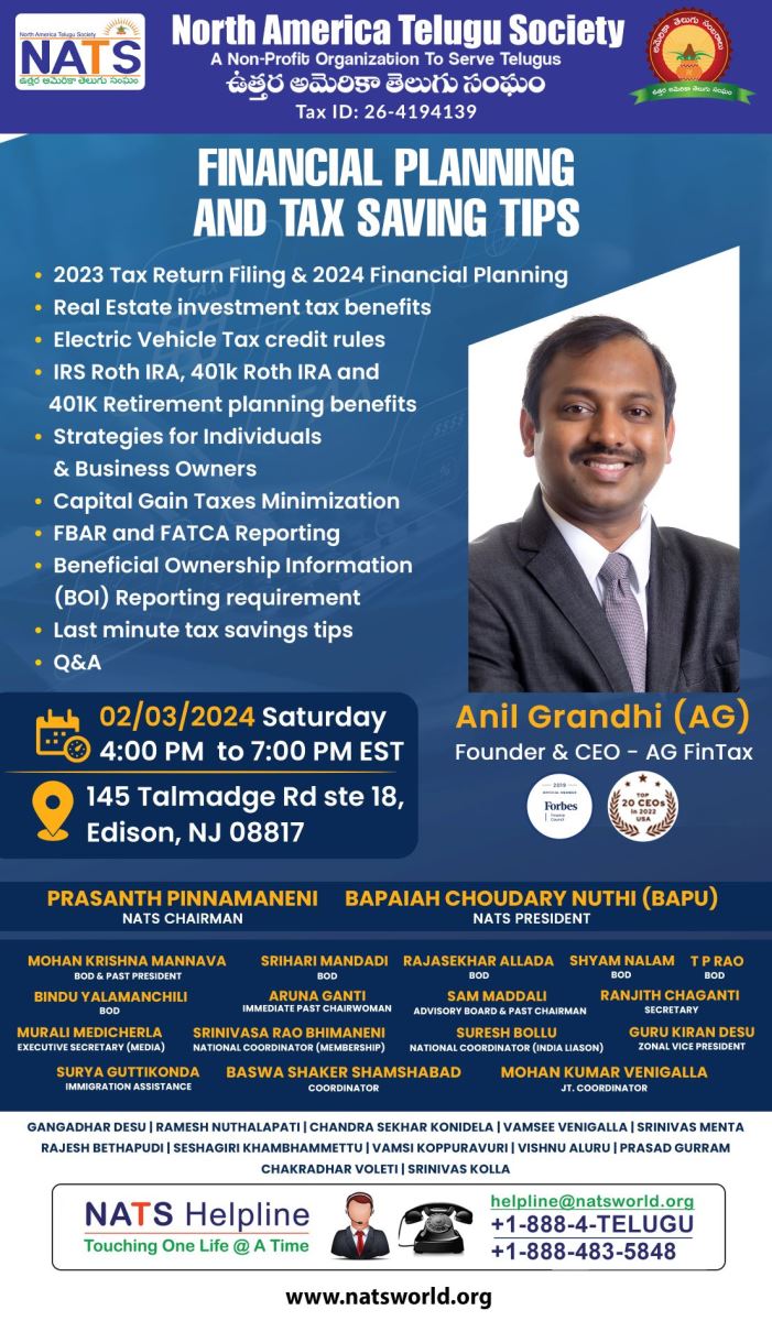 NATS Tax Seminar - Financial Planning and Tax Saving Tips - Details